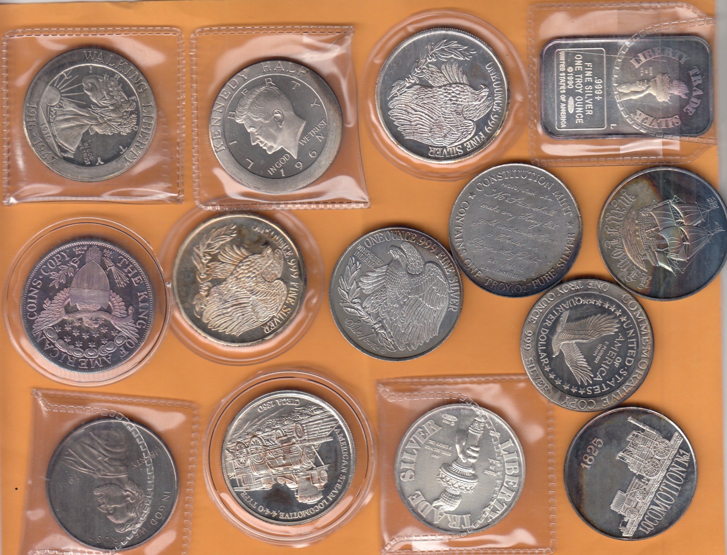 Lote 182: ESTADOS UNIDOS. Lote de 14 Medallas de una Onza de Plata con muy diversos diseños. Interesante.